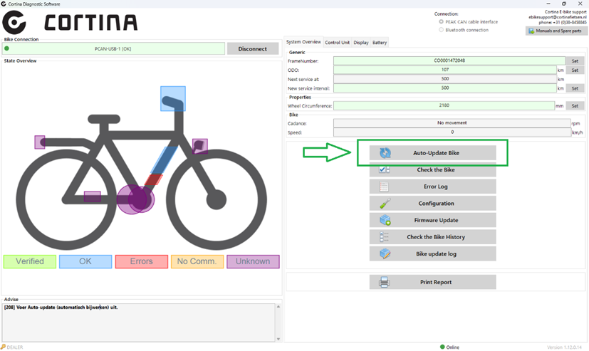 - Sluit de fiets weer aan op CDS – Klik op "Verbinden" (Figuur 12).